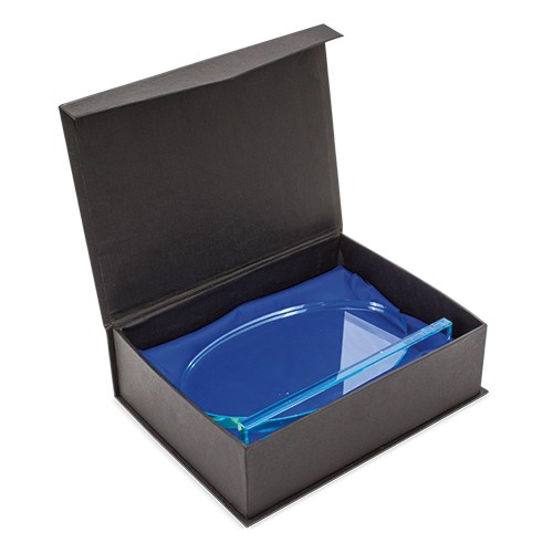 RDT3017751Trophée ovale en verre. Livré dans un coffret à l'intérieur rembourré et doublé de satin bleu, avec fermeture magnétique.