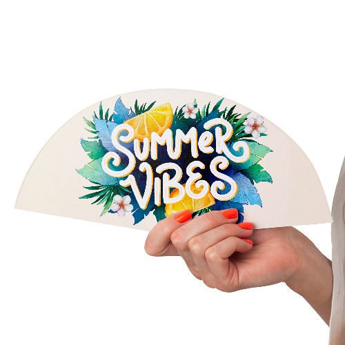 RDT3111247Éventail en papier couché mat 350gr, personnalisable en quadrichromie sur toute la surface. Matières : Papier couché mat 350g