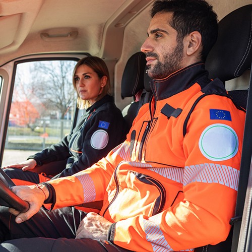 RDT2089236Veste en tissu 60% coton 35% polyester 5% élasthanne 220 gsm WR. Col montant, manches amovibles, ouverture centrale par fermeture à glissière, deux poches passepoilées sur la poitrine fermées par fermeture à glissière, deux poches plaquées à la taille fermées par fermeture à glissière ; en tissu haute visibilité avec inserts en tissu contrastant au col, aux épaules sur l'ouverture des poches ; deux bandes rétro-réfléchissantes de h=5 cm entourant la poitrine et les manches. UNI EN ISO