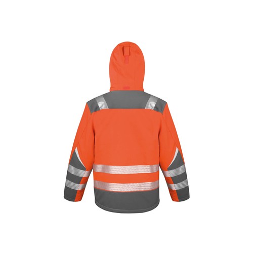 RDT3275378Softshell 3 couches avec capuche. Cordon de serrage capuche et Velcro® ajustable de profondeur. 3 poches extérieures (2 poches côtés et 1 poche poitrine). 2 poches intérieures. Rabats de protection intérieur et extérieur. Bandes réfléchissantes corps et bras. Protection poignet. Approuvé certification EN ISO20471. Imperméable : 8000mm. Respirable : 1000 g/m².